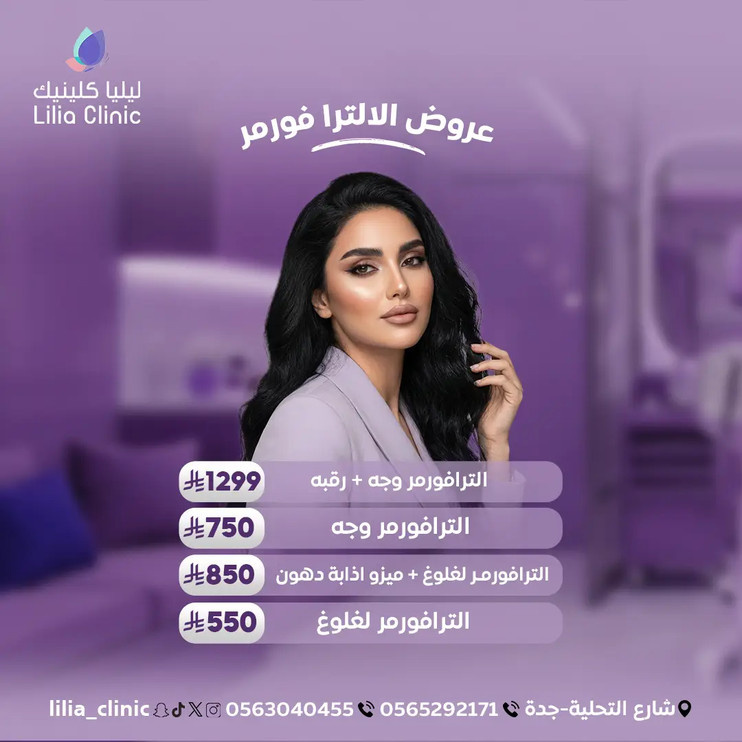 الترافورمر وجه+ رقبه 1299, الترافورمر وجه 750, الترافورمر لغلوغ + ميزو اذابة دهون 850, الترافورمر لغلوغ 550